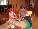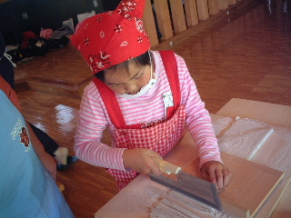 そば打ち体験に参加する子供たち 子供たちの一言 ○切るのが難しくて太いそばになったけど味は最高においしかった。 ○こんなに美味しいおそばが出来るなんて思わなかった。お母さんにも食べさせて あげたいです。 ○こねたり、めんぼうで伸ばしたりするのが楽しかった。